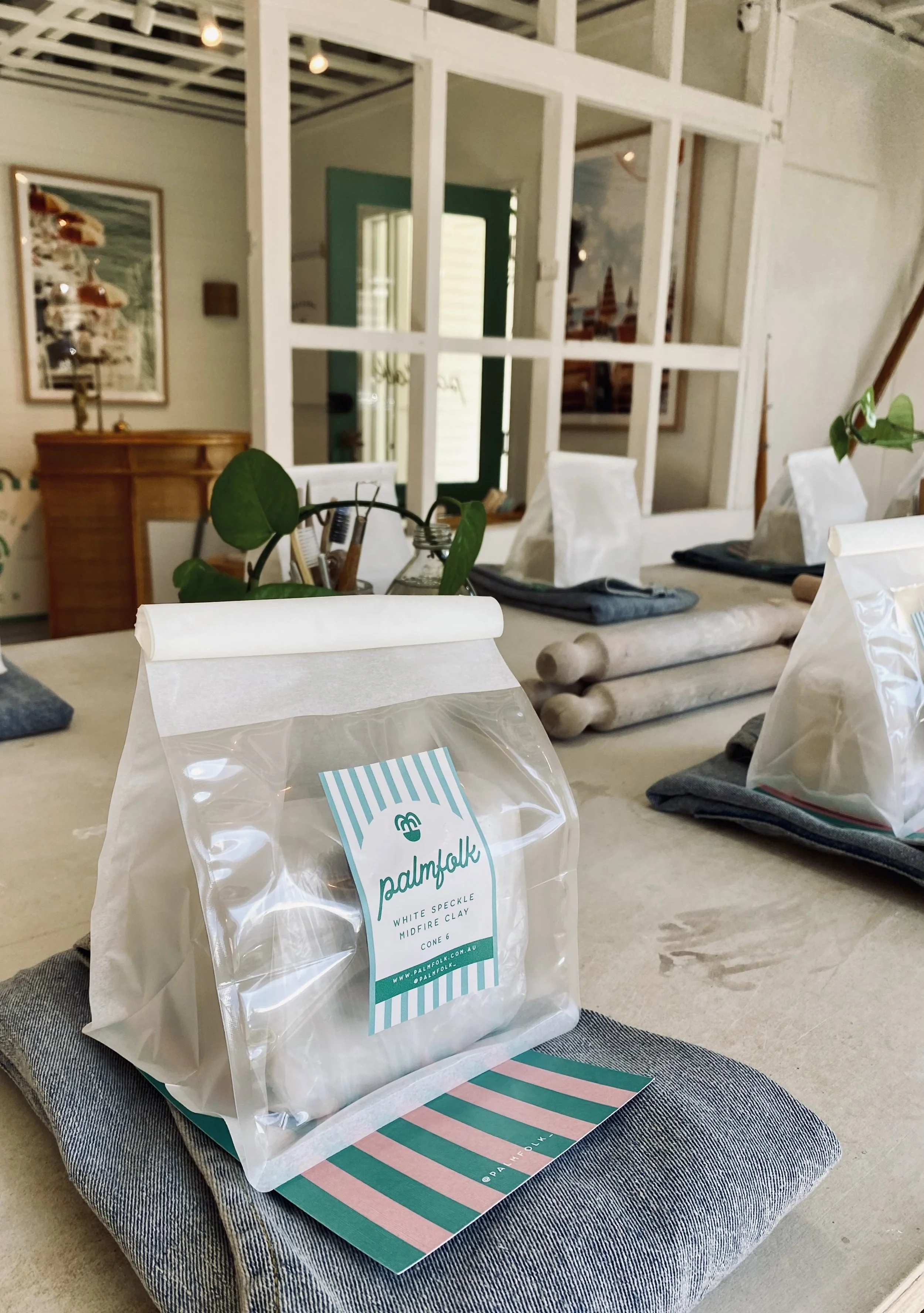 This is the ultimate Palmfolk clay and glaze creative experience. You will be given a piece of Australian earthenware clay and guided through the steps of making your very own piece of hand built pottery. Once your piece is made you will then have the opportunity to access our Glaze Bar should you wish to paint a design on your work with underglaze. Once your piece is complete it will remain here at the studio to be dried, glazed and double fired. Ready for collection in 5-6 weeks.